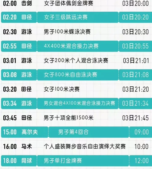 3.巴黎奥运会今日8.4日观赛指南