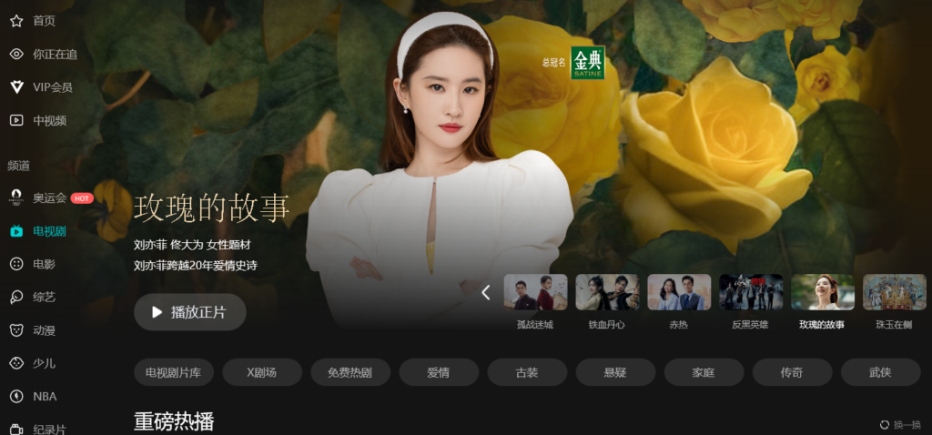1.在国内大部分的热门的电视剧和影视剧都在我们熟知的几大平台播放 以其中一个举例,涵盖了大量的优秀国漫资源以及最新最多的国内电视剧类型。古装 都市 情感 武侠等等应有尽有,早前我们熟知的玫瑰的故事,庆余年,猎冰等电视机都在该平台播出,你比星光美丽也在该平台播出