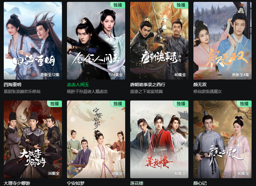 2.另外一个国内熟知的平台有着独特的原创综艺内容以及自制剧而深受大家喜爱,例如迷雾剧场之前推出的隐秘的角落,看不见影子的少年都有非常高的热度,日前大热的唐朝诡事录,宁安如梦和莲花楼也非常不错