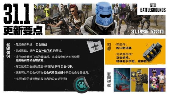 本次更新的主要内容有:公会系统更新;新的枪口配件;以及30赛季奖励发放
