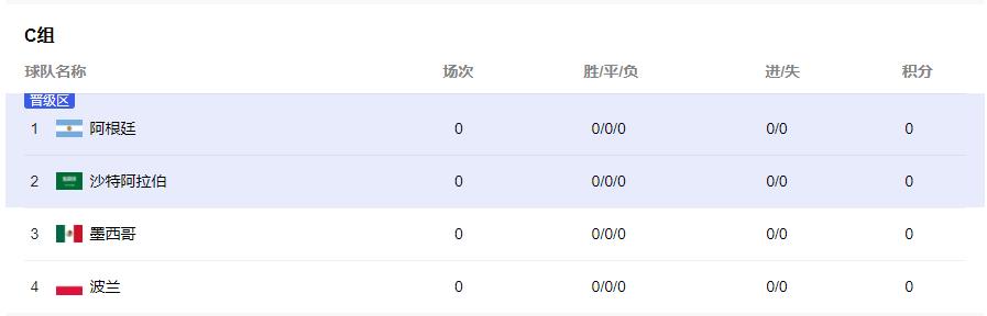 C组:阿根廷(C1)、沙特(C2)、墨西哥(C3)、波兰(C4)