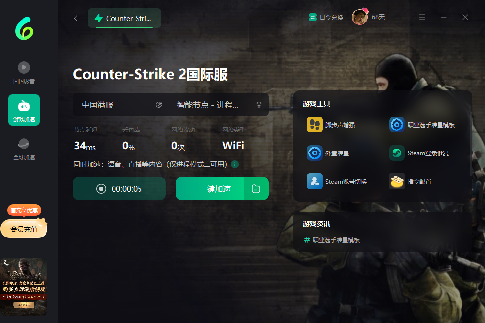 今天给大家推荐一个cs2的海外专属优化工具,包括了加速优化降低延迟,各种内置工具!