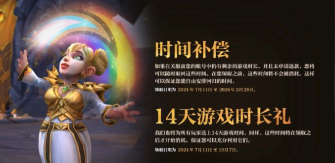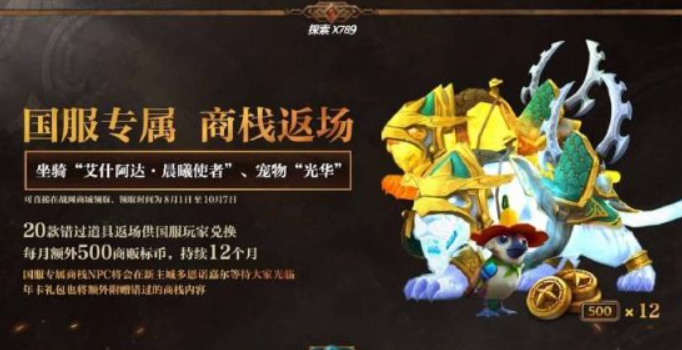官方也为等待国服的玩家们准备了各类补偿,例如专属坐骑,14天免费游玩时间,每月获得500额外商栈点数,怀旧服一个月50%经验增幅等等。
