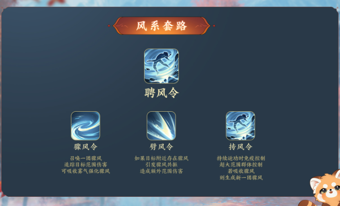 3.以折扇作为武器,那自然少不了对风力的掌握和操纵。聘风令套路最大的特点是擅长群攻,能对多个目标造成伤害和控制效果。