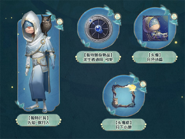 玩家还可以兑换限时上架的〖独特时装〗邮差-秋枫制服,并通过升级获得更稀有的〖奇珍服装〗邮差-秋日随想包括全新的〖独特时装〗先知-叙月人、活动头像框和头像。这次时装设计独具特色,先知的服饰以白色为主,搭配淡蓝色下摆和金边装饰,在月光下显得低调而华丽。