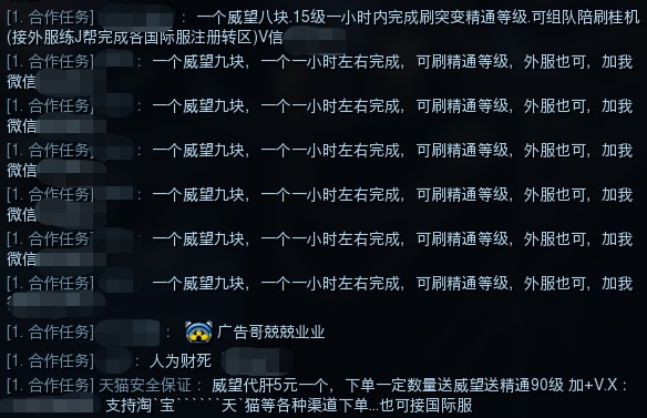 在《星际争霸2》合作模式聊天室内,往日常常刷屏的“5元或9元代练英雄威望”已经消失大半,取而代之的是“外服代练”和“外服账号注册”等。