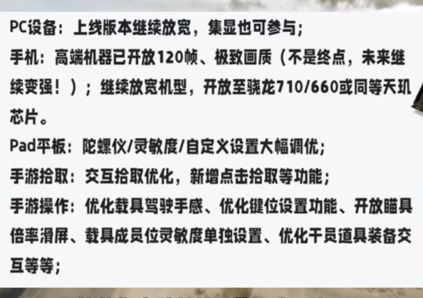 公测版本,将会优化设备适配问题,让更多配置偏低的玩家能流畅游玩,同时加入新的战场地图和武器装备,以及全新的空中载具小鸟。