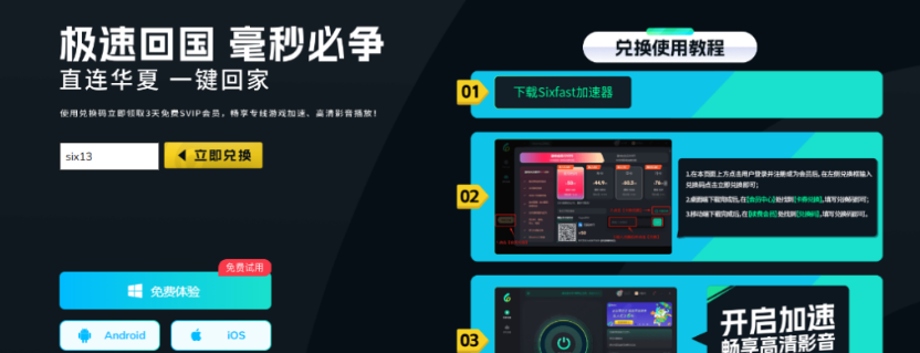 推荐使用Sixfast回国加速器,一键加速游戏影音