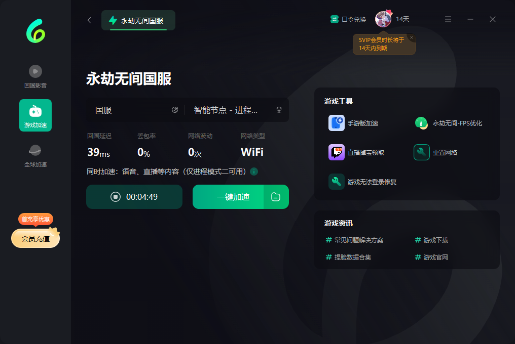 3、在Sixfast回国加速器内找到永劫无间国服,加速到100%就可以了流畅游玩了