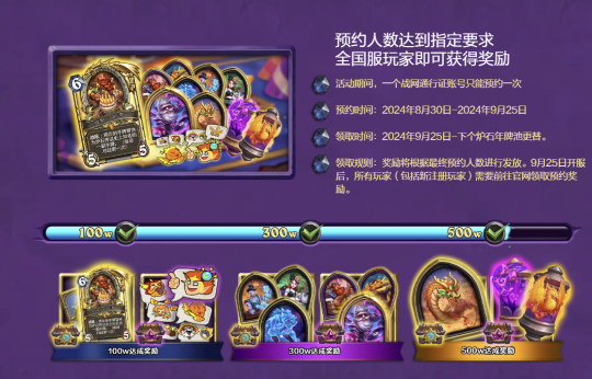 只要在9月25日登录《炉石传说》,所有国服玩家(包括新注册玩家)即可免费获赠独狼年标准模式错过的所有普通和金色卡牌,共计2154张卡牌,包括全部97张金色传说!