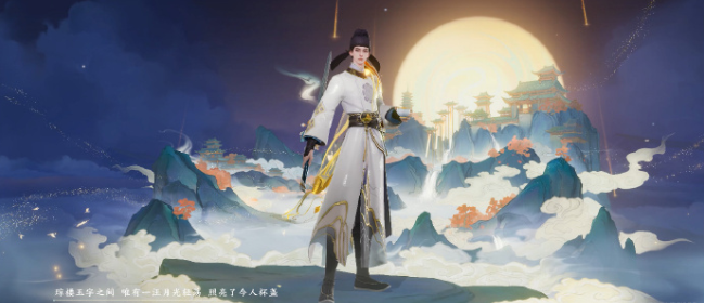 【李白-谪仙醉月】皮肤以“明月”为设计原点,抒写他追寻了千年的明月光。