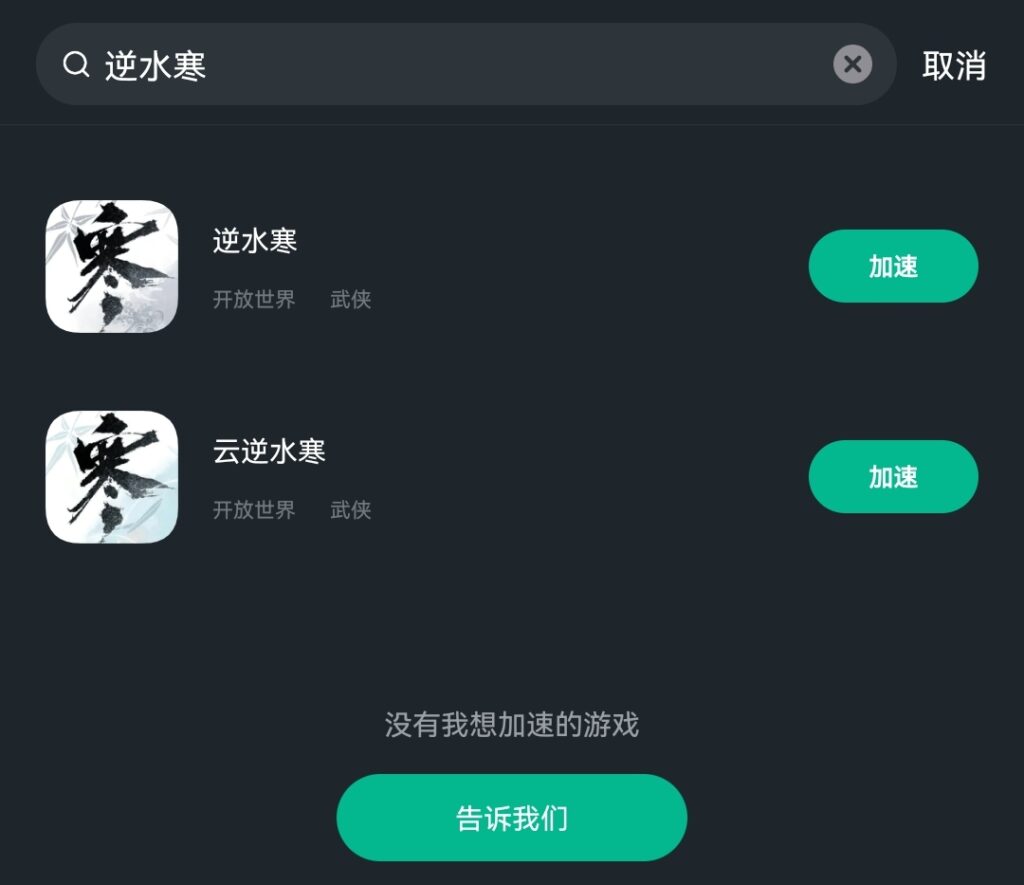 之后再游戏库内搜索逆水寒,然后点击加速,就可以正常解决在海外玩国服的网络问题