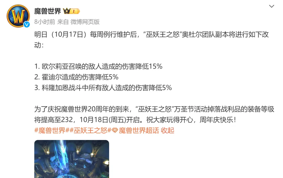 - 魔兽怀旧服奥杜尔团本持续削弱