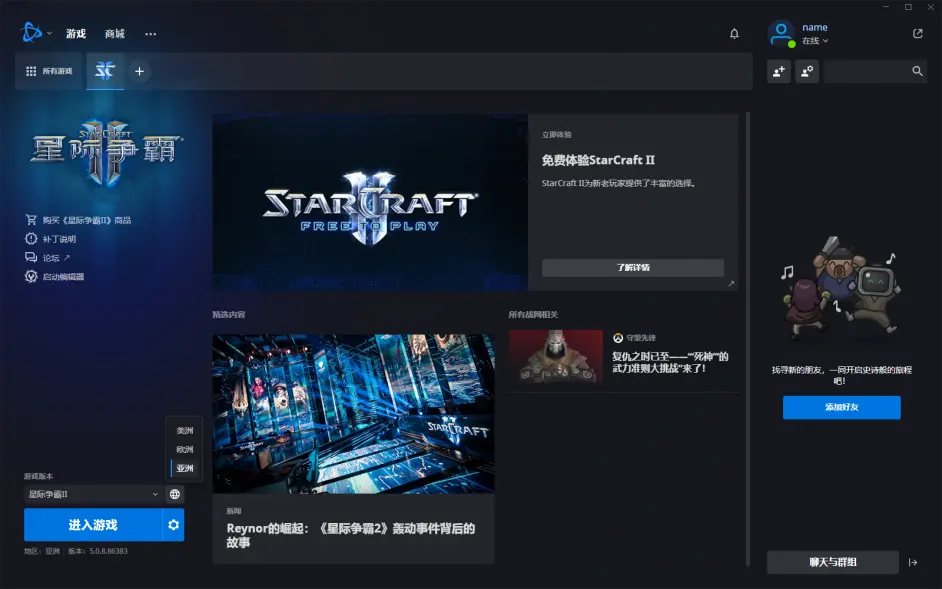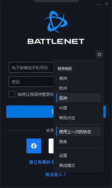 接下来就会发现你的战网可以选择中国以及其他服务器了,当然更改后可能会变成英文,这时候只要点击右上的齿轮设置即可更改语言。