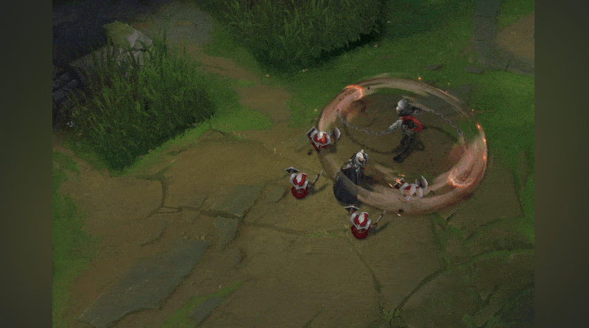 E技能 围绕自身周围选择造成伤害和减速,如果触发了被动则可以进行二段旋击
