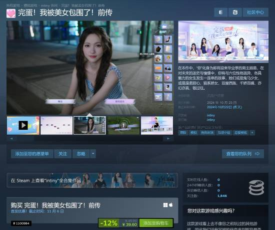 此外,官方宣布ip首作《完蛋!我被美女包围了!》新史低特惠贺《前传》新作上线。将在北京时间10月24日凌晨1时-11月7日凌晨1时,七折优惠限时开启,单独购买仅需29.4元。