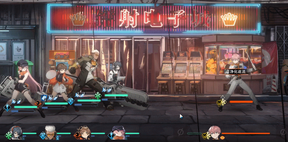 为了强化临场感,每名角色战斗时都有一个从横版到追背视角的自然转化,再加上角色动态立绘和华丽的大招演出,都让人惊觉原来2D游戏也可以有这么多的切入角度。这种同类产品中少见的“视角变化”,即便经历了多次测试,