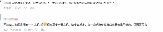 不少玩家都表示这次试玩的画面表现上比起之前放出的内容来说进步了不少,人物动作也比之前好多了。