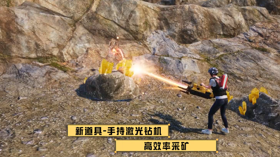 回到改动,地图内还新增了晶元矿区,可进行开采,还有全新的手持道具激光钻机,在开采的过程中可以效率更高。