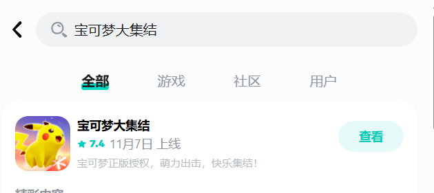搜索找到taptap,在taptap中搜索宝可梦大集结,按照手机不同选择下载不同的客户端。就能下载到游戏了。
