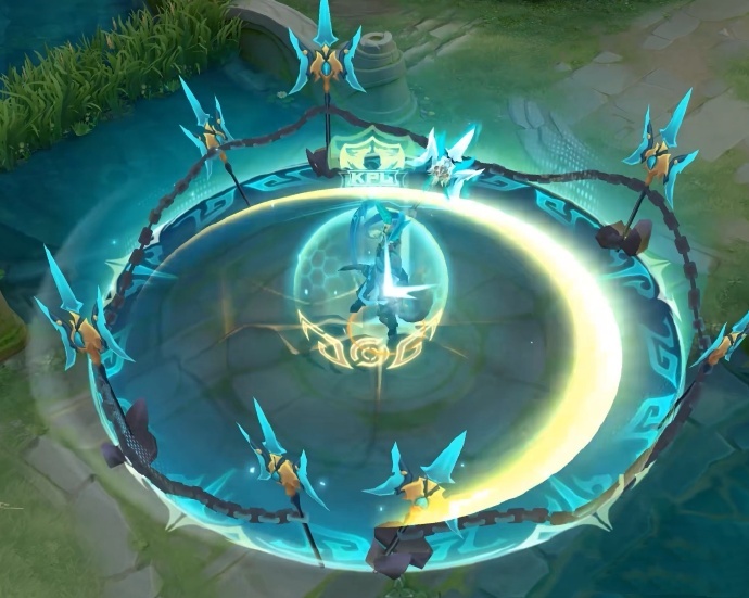 在色彩上,逐霄战戟皮肤以代表未来科技的蓝色为主色调,再以古典的金色与绿色作为点缀,使得整体视觉效果既现代又不失东方韵味。服饰设计上,采用科技纤维面料和半透明材质来体现盔甲的科技感受,同时在翎羽、胸甲、护膝等处采用了金色云纹、龙纹等元素来强调东方古典韵味,令人惊艳。