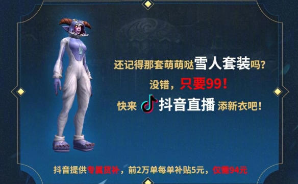 11月11日-12月2日期间,在魔兽世界抖音官方直播间将会开启带货直播,玩家在活动期间可以前往直播间购买自己喜欢的坐骑、宠物、幻化等,全部为5折促销价。