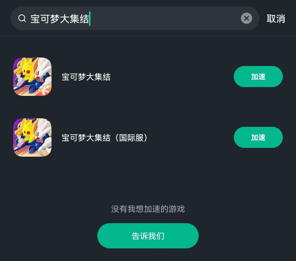 之后在手机端游戏库内搜索宝可梦大集结,然后点击加速,就可以正常解决在海外玩国服的网络问题