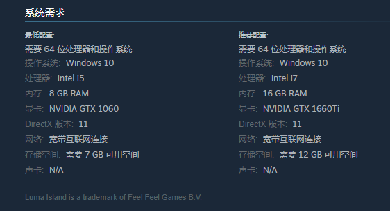 - 最低配置需要 64 位处理器和 Windows 10 操作系统、Intel i5 处理器、8GB 内存、NVIDIA GTX 1060 显卡等,需要 7GB 可用空间。推荐配置为 Intel i7 处理器、16GB 内存、NVIDIA GTX 1660Ti 显卡等,需要 12GB 可用空间。