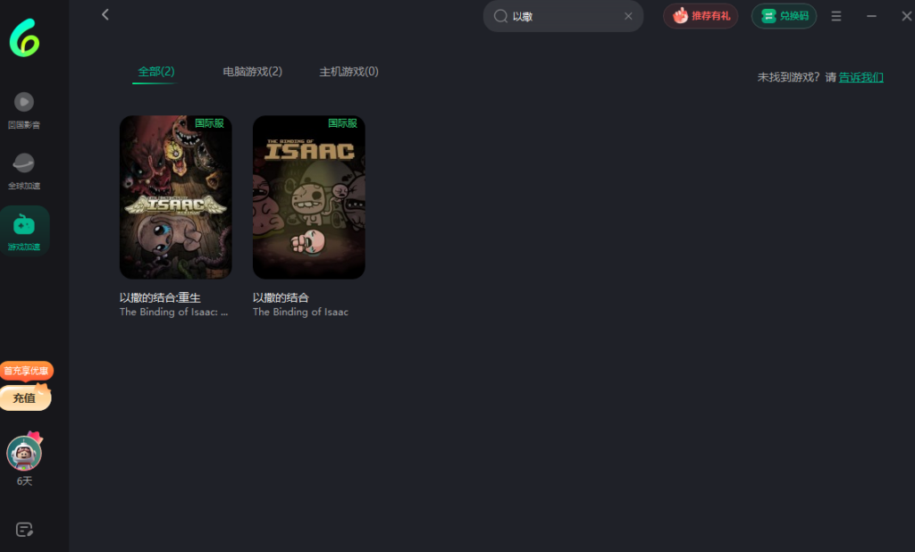 PC端可以进入:https://appupdate.sixfast2.com/official/pc/Sixfast_windows_683.exe进行下载。游戏库内搜索以撒的结合就能找到对应版本