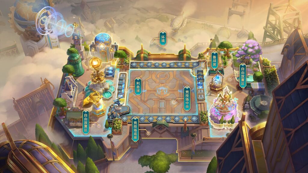 在《金铲铲之战》的幻境系统中,个性化装备区域丰富多样,涵盖竞技场底座、环境装饰、竞技场中央、利息球、备战席,以及自由放置区等多个部分,弈士们可以根据个人喜好,自由放置和组合喜爱的配件,让竞技场焕发独特魅力。