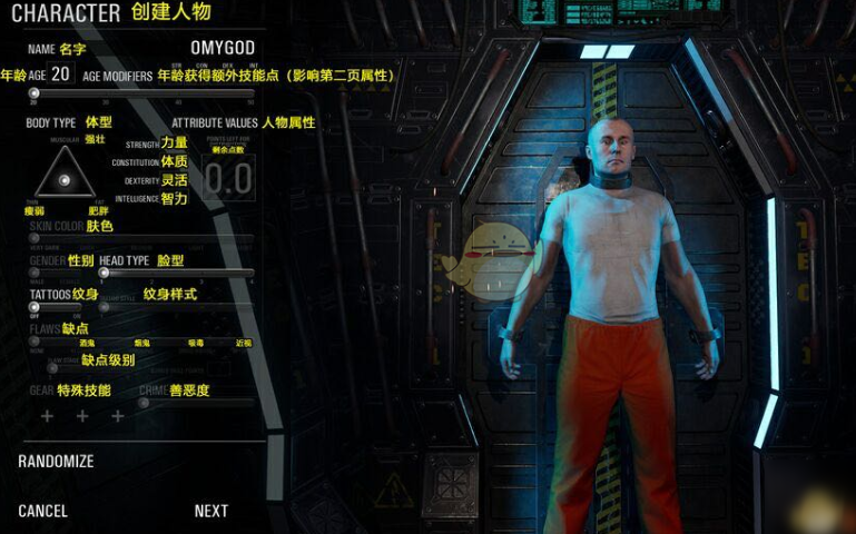 《人渣》拥有一个十分精细的人体模拟系统。在创建角色时,玩家可以自行调整自己角色的年龄和身材,不同的数值将决定游戏角色的属性和技能点分配。