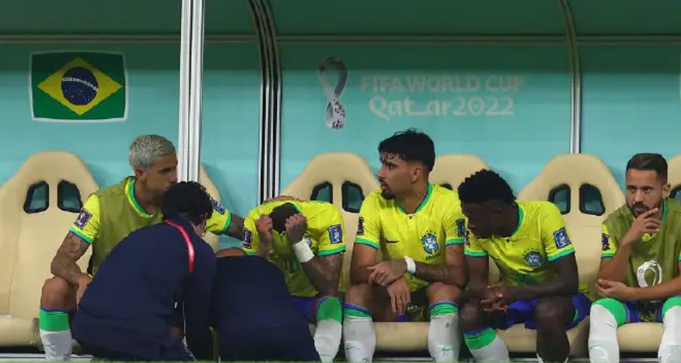 据统计,继上届世界杯中创下当场比赛被侵犯10次的纪录之后,内马尔本场比赛9次遭到对手侵犯,这是本届世界杯开赛至今的单场纪录。有镜头拍到,坐在替补席上的内马尔掩面哭泣接受治疗。他的队友维尼修斯赛后接受采访时表示:“内马尔受到了打击,希望他没有大碍。”