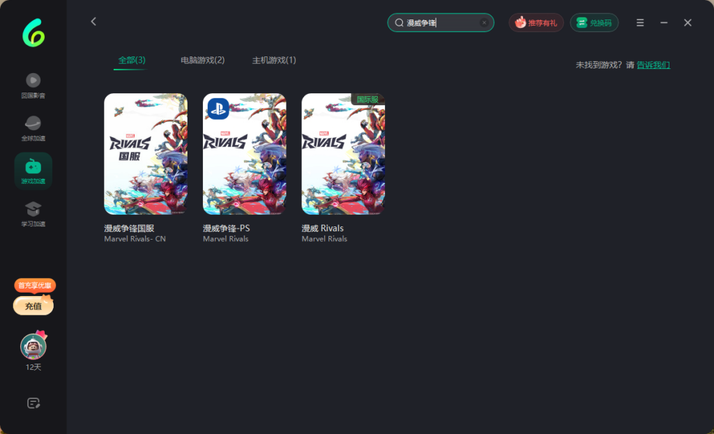 兑换完成之后搜索漫威争锋国服点击加速即可!