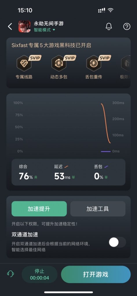 3、在Sixfast回国加速器内找到永劫无间手游,加速到100%就能解决上述问题了