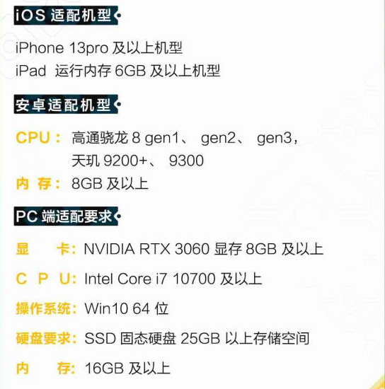 本次测试中,如果玩家的设备配置无法达到官方推荐的配置设置,将不能进入游戏请注意