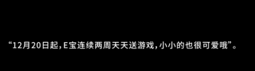 E宝在活动开启前多次发布整活视频表示,送的都是游戏性佳作,”小小的也很可爱”。既然是白嫖游戏,还是希望各位对E宝多多包容!