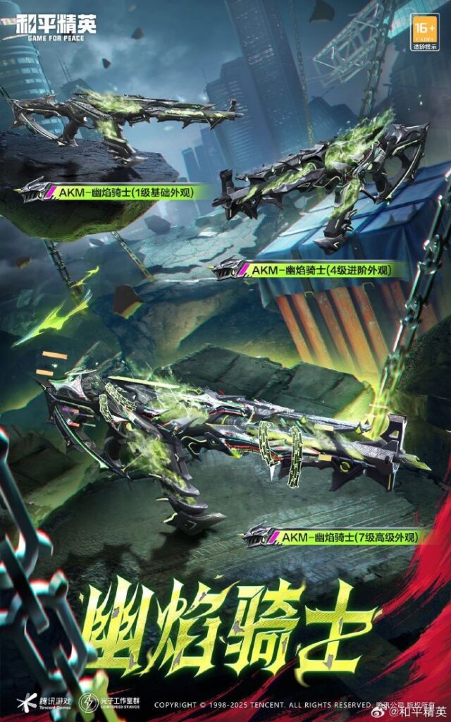此系列的核心枪械 AKM 升级枪,外观与主题紧密相连,枪身被幽焰光芒环绕,枪托设计成骑士剑柄形状并镶嵌红色宝石,弹匣表面刻有火焰符文,随着升级等级提升,特效越发酷炫,9 级时整把枪会被熊熊幽焰包裹,射击时伴有火焰巨龙特效。载具方面,幽焰风驰摩托车和幽焰列车飞行器是亮点,摩托车车身涂成炽热红色,车头如骑士头盔,车轮边缘有火焰特效,车身上还有骑士配饰;飞行器则如夜空中的传奇,能快速支援和转移,为玩家提供制空权.