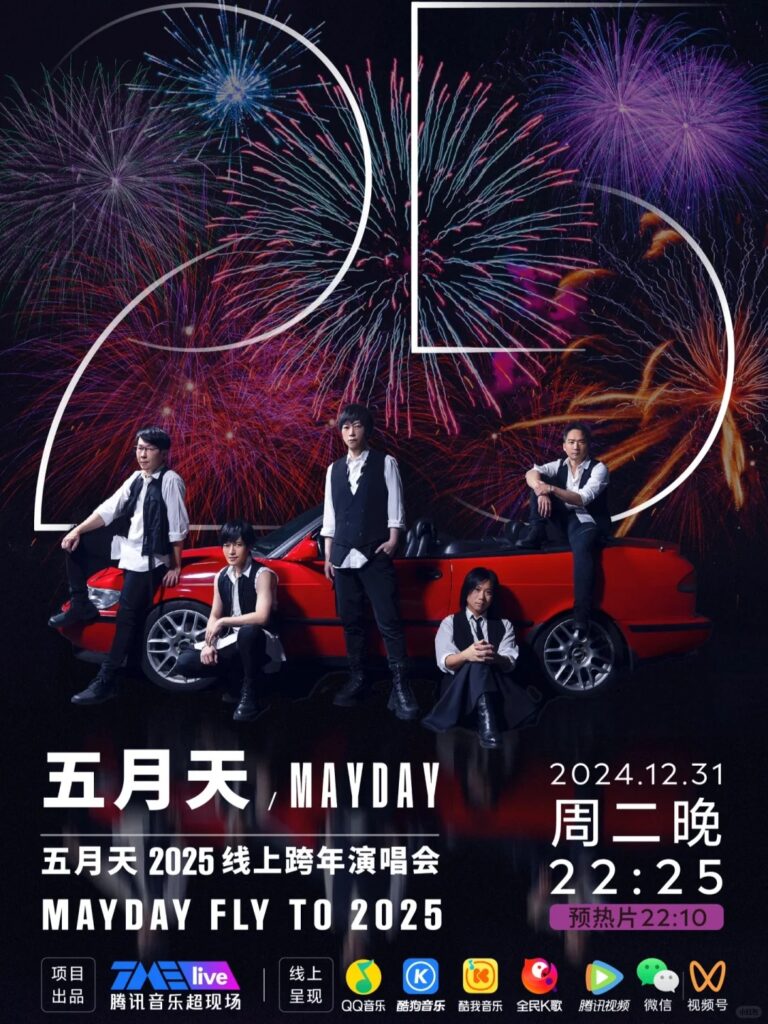 五月天 2025 线上跨年演唱会将于 2024 年 12 月 31 日 22:25 正式开始,22:10 开始热场