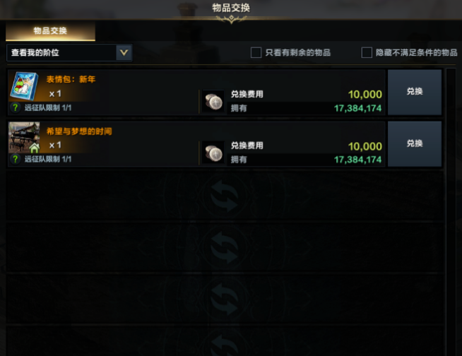 冒险家们还可前往系统角色【[活动兑换]愿望】处使用银币兑换传说点唱机乐曲和【表情包:新年】等奖励