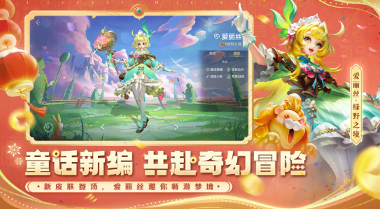 奇幻冒险,即刻启程!童话新编系列皮肤登场,『绿野之境』爱丽丝携手『绒狼之森』精卫邀你畅游梦幻仙境,与伙伴一起续写童话,踏上奇幻的冒险之旅吧!