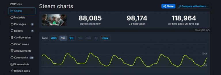 值得注意的是,《三角洲行动》在Steam平台上的玩家活跃度依然保持高涨,目前同时在线人数已达到8.8万,之前的高峰则更是到达了11.8万。这一数据不仅彰显了游戏的受欢迎程度,也反映出玩家社区的活力与向心力