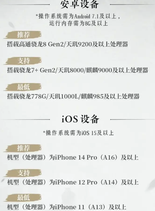 • 燕云手机端配置推荐介绍