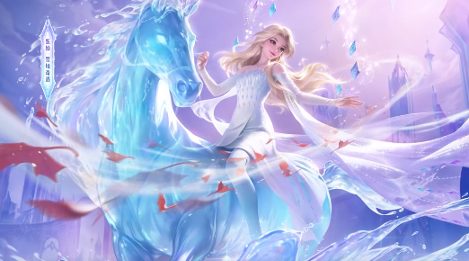 以冰雪元素为核心,结合雪宝宝、巨人雪怪、水马和冰马等电影中经典元素,带来一场奇幻的冰雪奇遇。同时,我们以两部电影中经典的两套长裙为灵感,重新设计了角色的行走和技能动作等,以蓝色长裙造型展现其优雅魅力,以白色长裙造型展现其敢于冲破桎梏的勇敢形象。