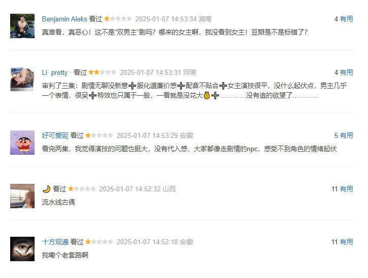 仙侠剧作品,比较适合粉丝型群体观看。按理说,这样的电视剧作品上线之后,首先形成的,应该是大量的好评才对。因为只有粉丝群体,才会第一时间追这种轻松幽默的仙侠剧作品。然而,《白月梵星》在豆瓣短评区域,形成了大量的差评。差评规模,已经连成一串了。