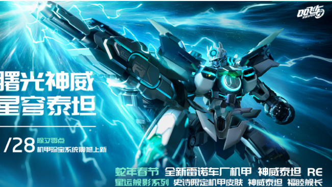 1月28日,蛇年春节全新雷诺车厂机甲「神威泰坦 RE」,携星运舰影系列史诗限定机甲皮肤「神威泰坦 福睦舰长」首发上架机甲珍宝系统。