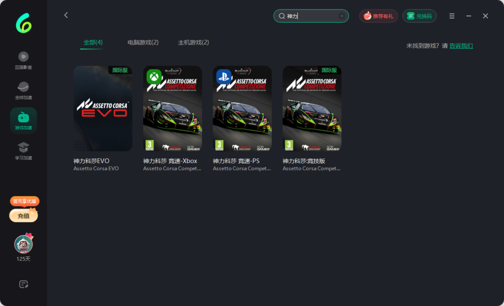 兑换完成之后搜索神力科莎evo点击加速即可!