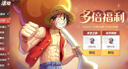 活动期间,点击主界面【活动】按钮,可查看活动详情并参与活动。船长在活动期间参与寻宝之旅、无尽探险玩法可获取额外道具奖励。