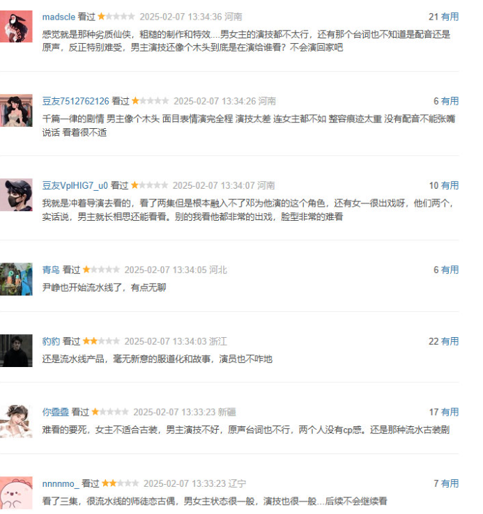 《仙台有树》的数据情况,需要静待时日,没办法一上线就看出来。但是,这部电视剧的观众口碑,则反馈得比较明显。在豆瓣,这部电视剧已经出现了大量的差评内容。当然,也不可否认,这部电视剧也出现了不少的粉丝属性明确的好评。然而,该剧在豆瓣短评当中,已经出现了成片的差评,已经不是差评和好评参差出现。显然,非粉丝型的观众,通过差评,表达了对于这部电视剧的不满。