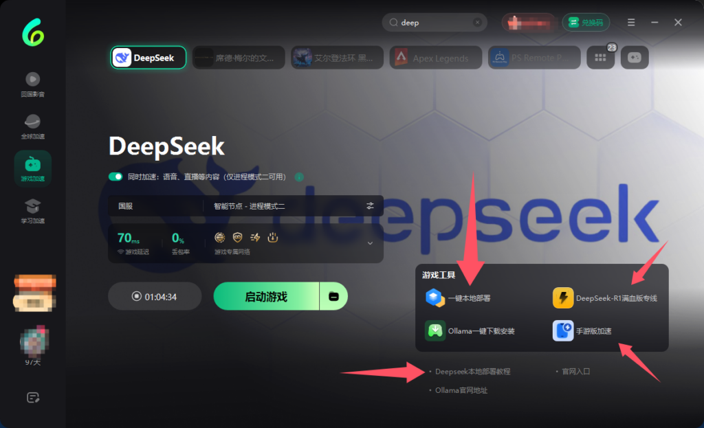 首先是网络优化,使用sixfast加速器网络优化工具能有效降低网络延迟、提升连接稳定性,当 DeepSeek 打不开或卡顿,大概率是网络不稳定,打开sixfast加速器搜索并加速 DeepSeek,获取最优网络节点以确保顺畅连接服务器;