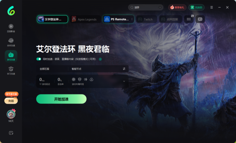兑换完成之后搜索艾尔登法环:黑夜君临点击加速即可!